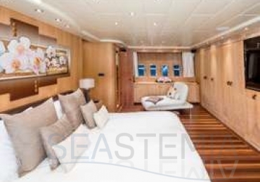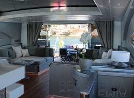The spacious sundecks make it easy to enjoy the Mediterranean outdoors. Two large sunpads, one at the front deck and the second at the fly, are perfect for spending unlimited hours of sunbathing or simply relaxing during the cruise. A large platform at the aft deck makes it easy and safe to access the crystal-clear waters of Mediterranean Sea.