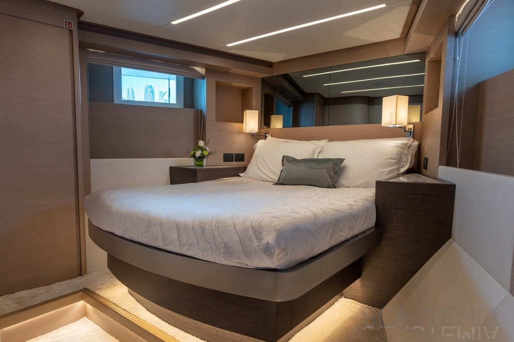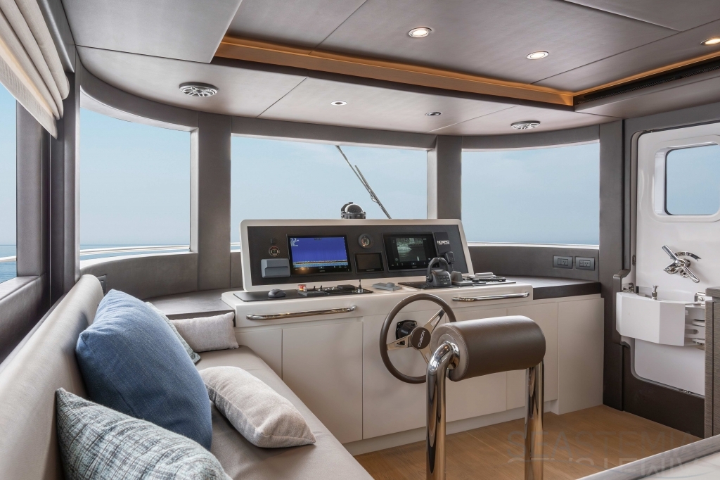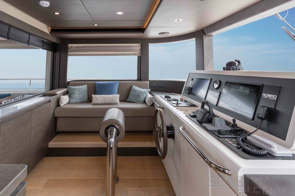 The Nomad 75 delivers both an open fly-bridge version or fully enclosed upper deck and creates a feeling of space and comfort beyond the category specification.