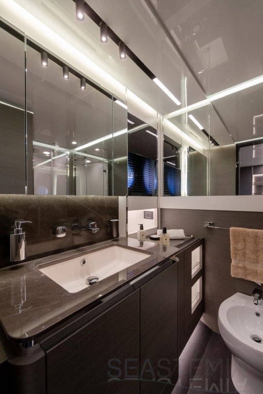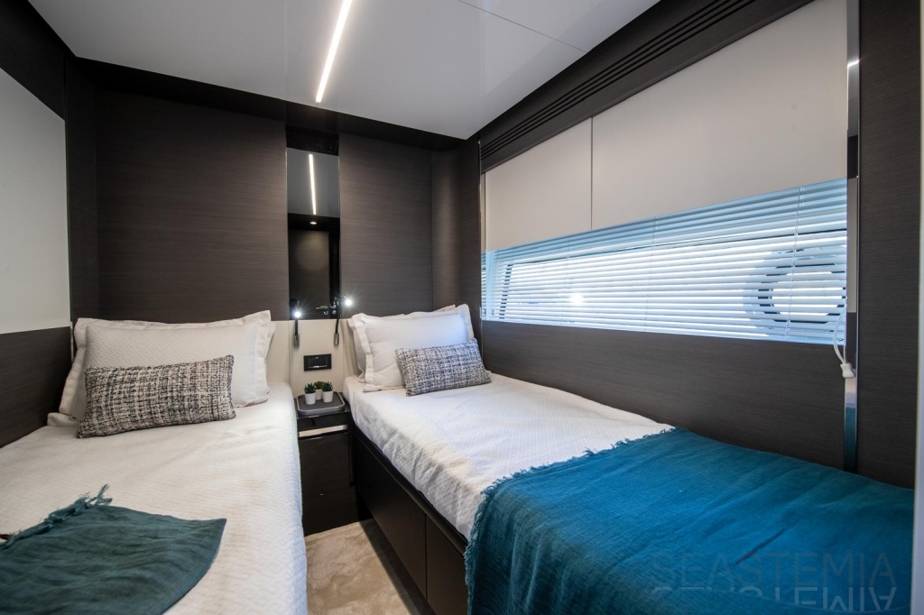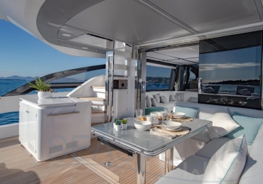 The 24-meter beauty of the Azimut S8 series is a high-tech sport yacht shaped by an environmentally conscious philosophy. Its wind-inspired design and forward-thinking character come to life through a carbon fiber structure, delivering outstanding performance and near-silent navigation while reducing fuel consumption beyond expectations for its class.