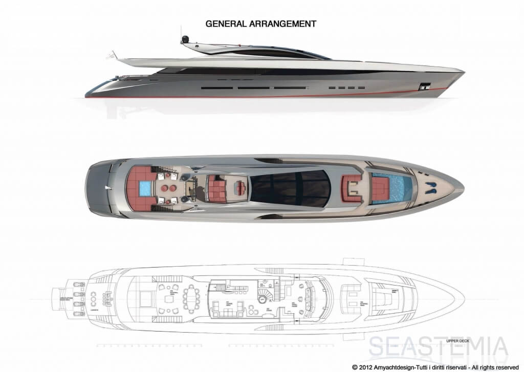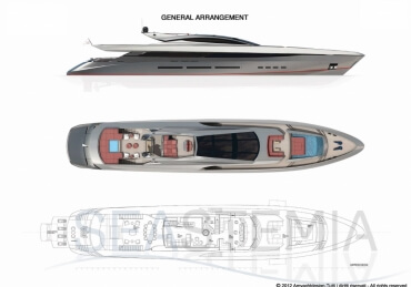 New project, studies as a fast semi displacement Aluminium designed and to be built by a famous renowned italian Shipyard