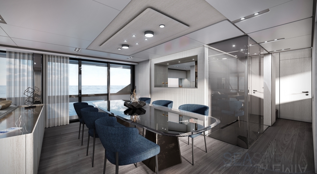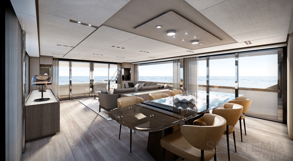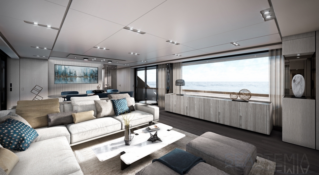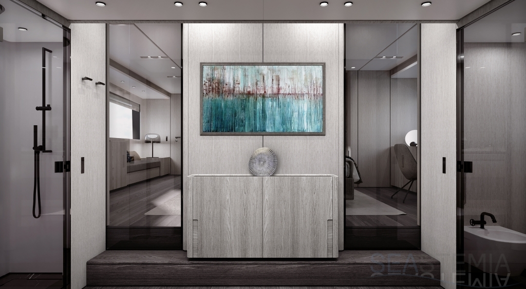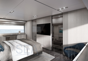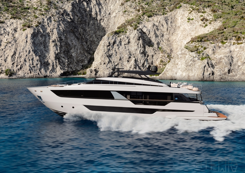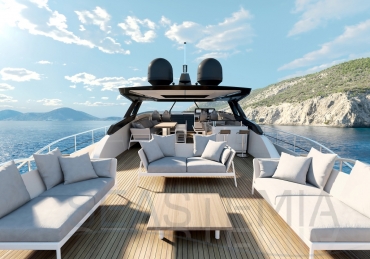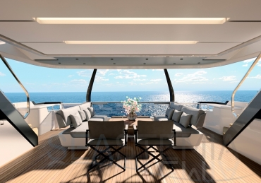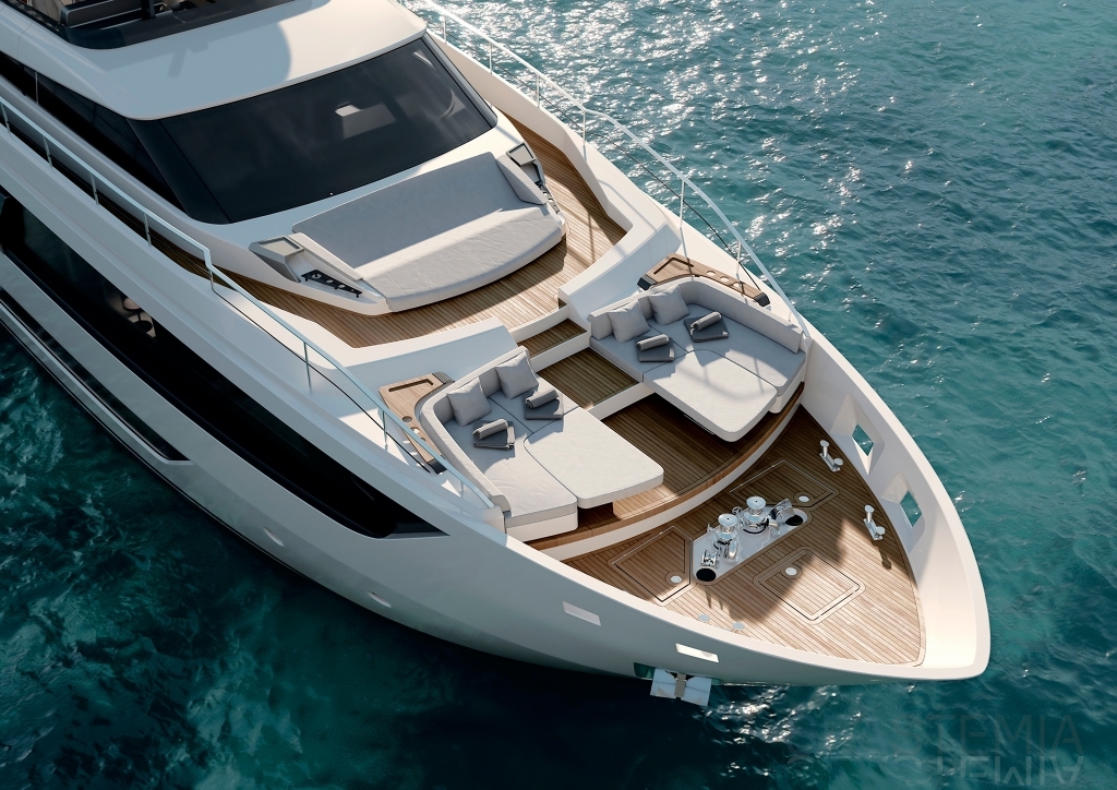 No dream is too big: overall lenght of 100 feet and first breath takingn units which brings Ferretti into new territories. This forthcoming new Majestic and Versatile Ferretti flagship redefine all spaces and onboard life. With its brand new concept aft beach platform as well as its new bow to Fly total connection, this new yacht will offer to improve again owners and guests privacy and onboard life thanks to unprecedent innovative solutions and features.