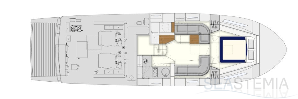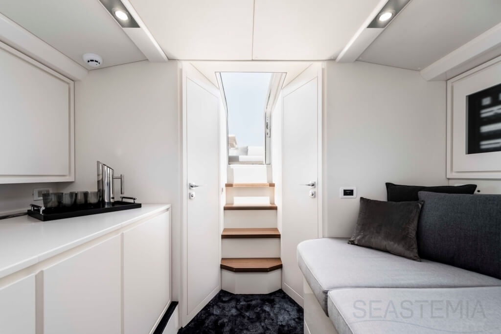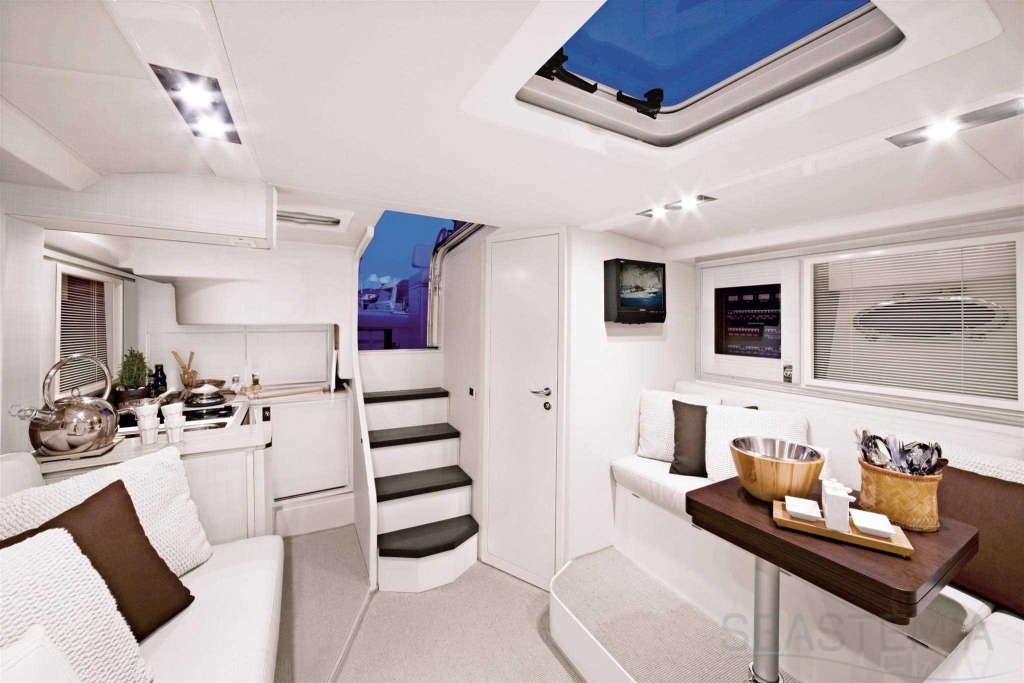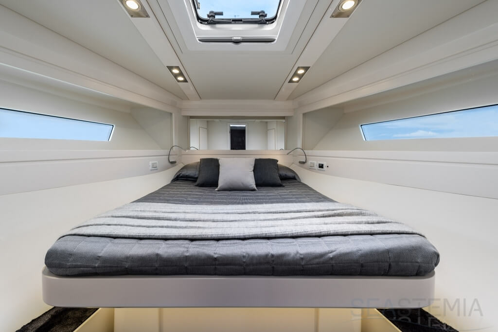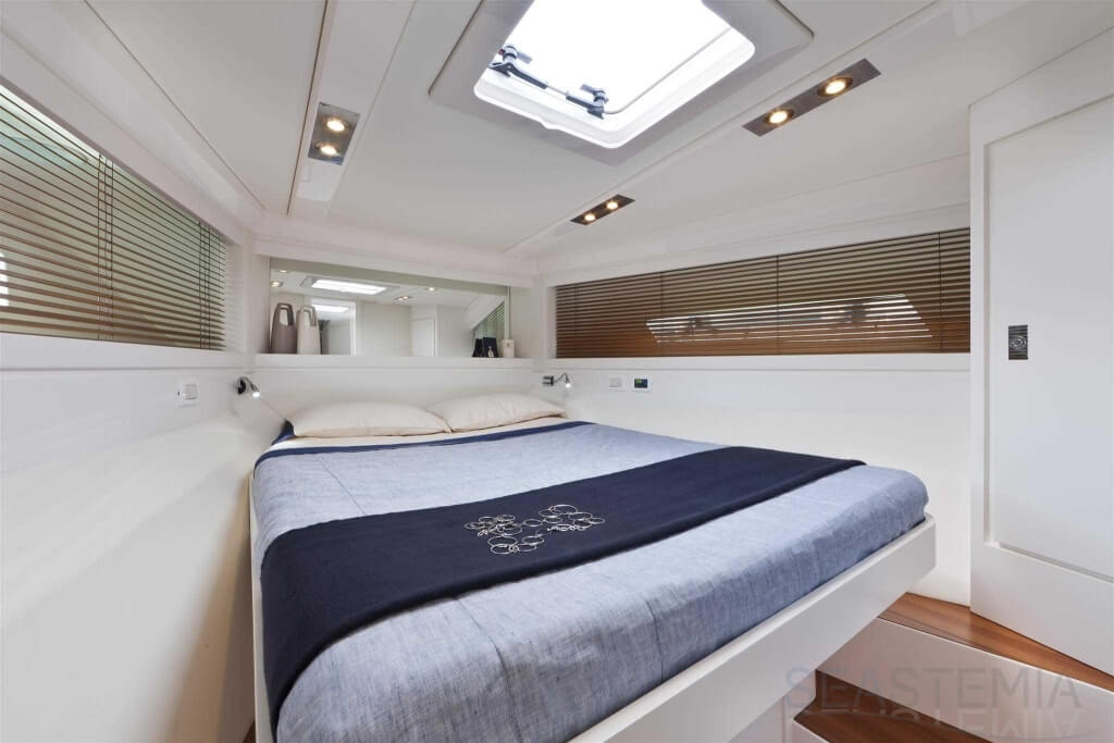 All timer Itama Iconic model, the intemporal design 45S received only touch up in order to be improved again a bit more approaching excellence with the central hatch allowing main deck to fore deck secure central access, more powerfull engines and the stabilisation as new features.