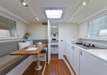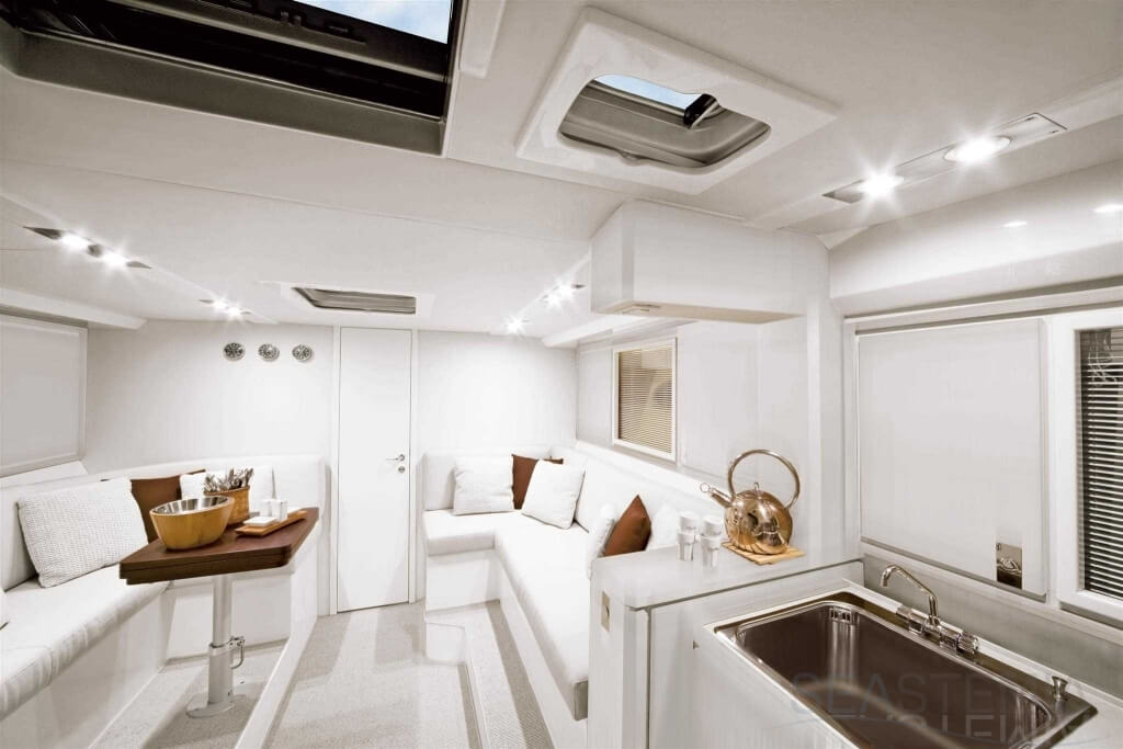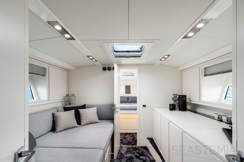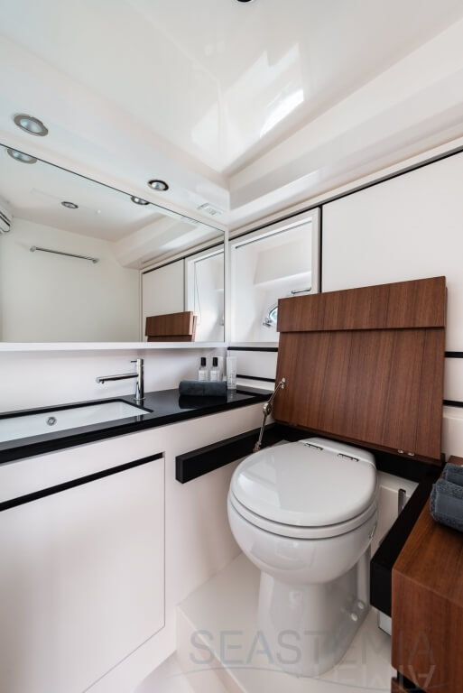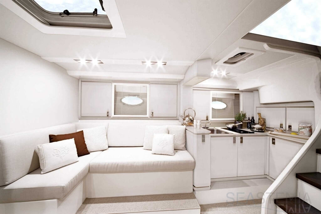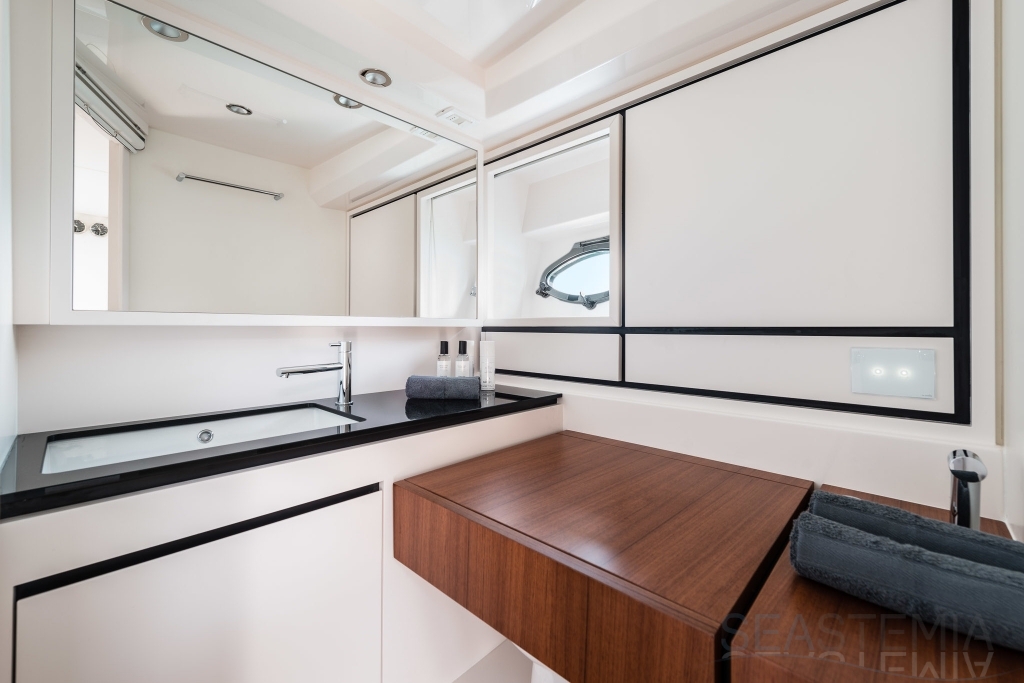 All timer Itama Iconic model, the intemporal design 45S received only touch up in order to be improved again a bit more approaching excellence with the central hatch allowing main deck to fore deck secure central access, more powerfull engines and the stabilisation as new features.