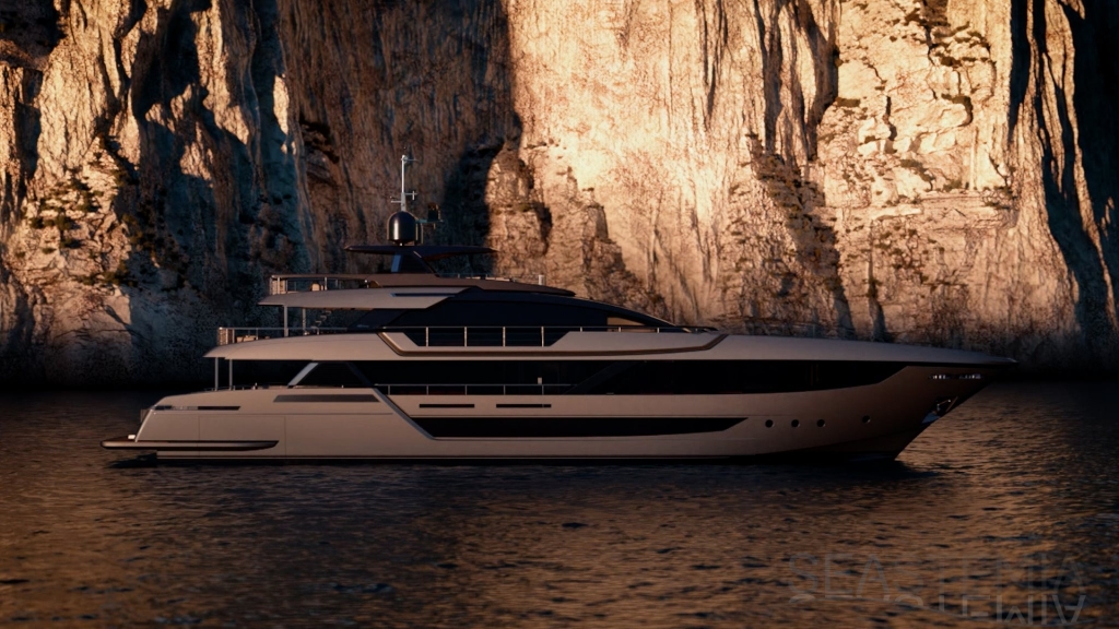 The largest model in the flybridge range was built at Riva’s La Spezia Yard