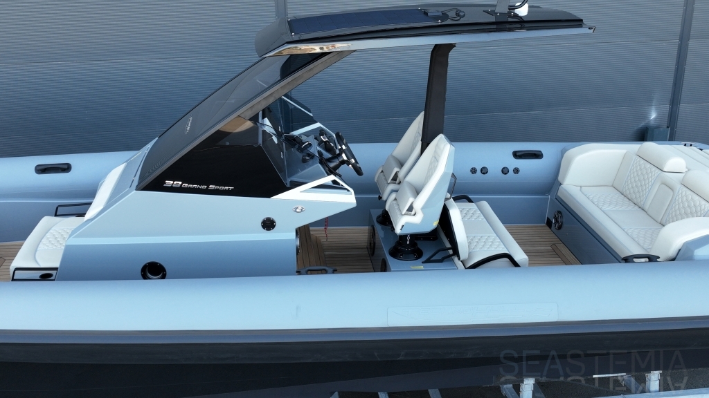 The 38 Grand Sport above all is a state-of-the-art boat that makes all stereotypes about high performing sport boats dissolve right after the first experience. Being fast and efficient and at the same time, a reference point in all around and offshore use, the 38 Grand Sport without a doubt, redefines performance and comfort in every way.