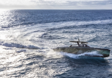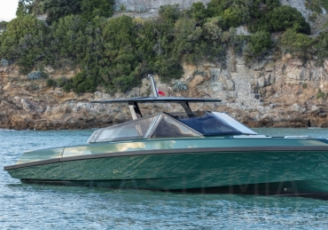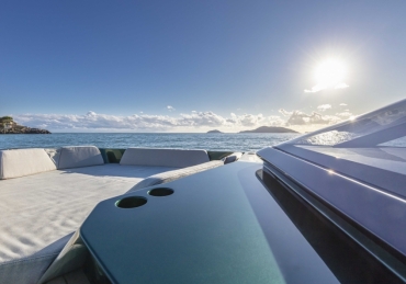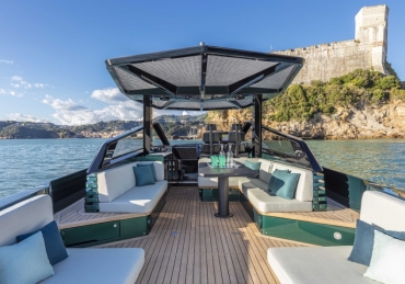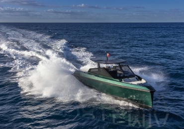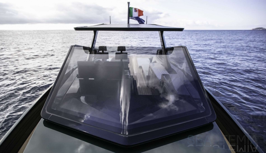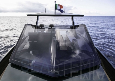 Very fast, robust and practical 13-meter runabout where form perfectly balances with multifunction, introducing the innovative “center cockpit” design to provide all the protection of a cockpit with the practicality and access of a walkaround. Those onboard can enjoy the feeling of being in the open air with the added security and comfort typical of a more enclosed yacht.