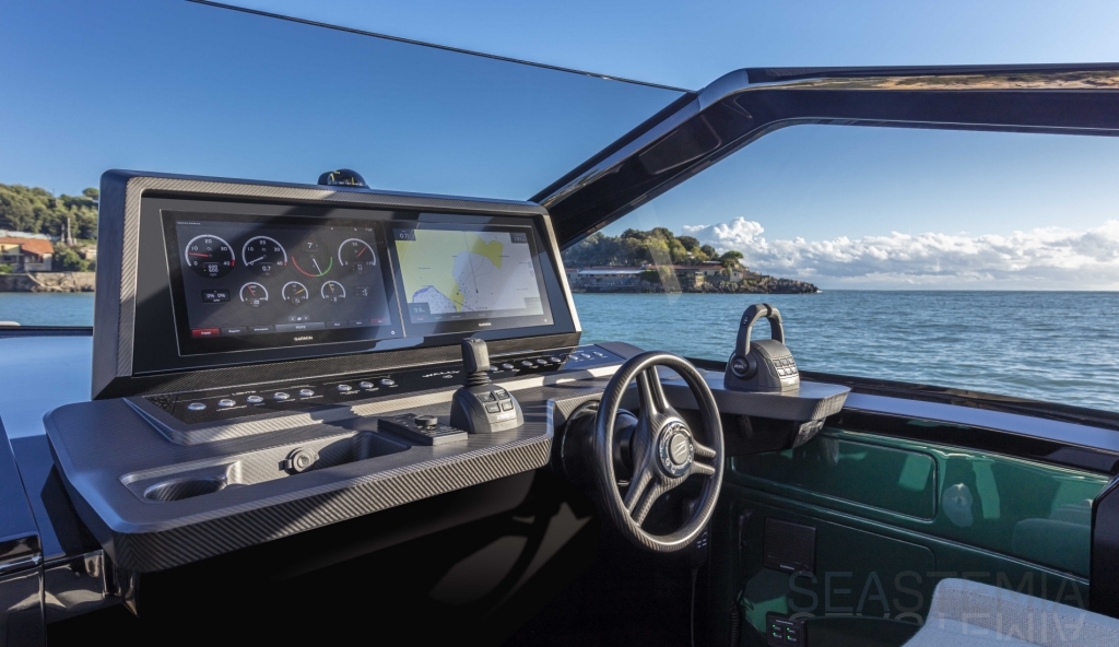 Standard twin Volvo Penta diesel 380hp stern drive engines with maneuvering joystick controls. Option to upgrade to twin 440hp engines for predicted top speeds of over 40 knots.