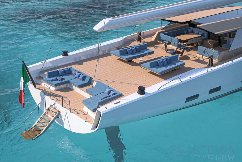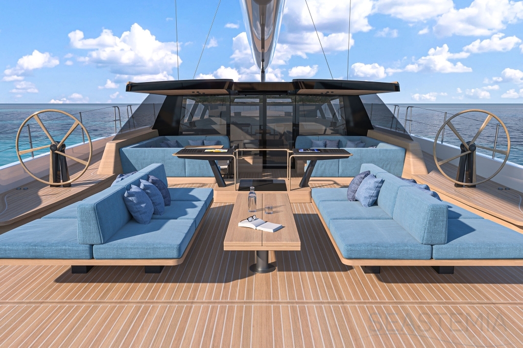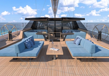 Cockpit space is on a whole different scale, with three distinct zones that run aft to the sofas around the beach club - there’s room to entertain 20 or more guests here in extraordinary comfort and style.