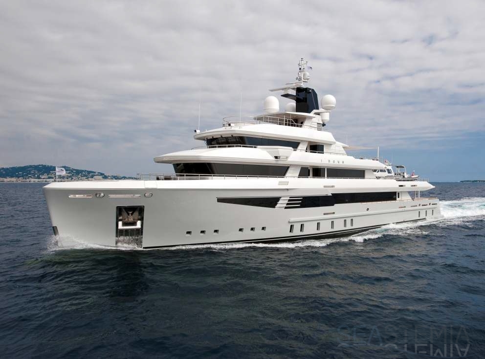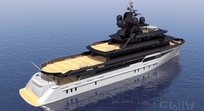This 49,75 meters steel hull and aluminium superstructure will accommodate 14 guests in 6 suites.