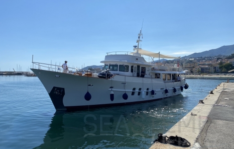Bright high quality example of the mid last century 1950-60's Yachting excellence, this Canoe Stern Yacht is a flagship by itself of what was yachting golden age in the French riviera. Built in 1969 and fitted with 2 original Gardener Engines totally rehauled in 2012 together with the rest of this Yacht for an extensive refit at the Feadship yard in 2012, to grant this unit its a true Pedigree but adding what's needed of modern technology to do not compromise comfort and safety onboard.