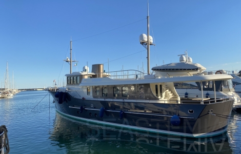 This ultra high-end Dutch premium quality built, modern and at the edge of the technology interpretation of retro style displacement trawler, is used as a shipyard's demo unit and therefore maintained in a mint/new condition. This Strong steel yacht generous in volumes is a comfortable 4 Cabins version for 9 guests to be used as a family boat fitted on a single engine version and long range, it represents the most fuel efficient yacht from its category, but could however be easily retrofitted in a twin engine version by the Manufacturer.