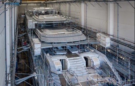 Ancona, June 10, 2025 – An epitome of bespoke, cutting-edge innovation, naval engineering and refined Italian craftsmanship, CRN is building the vessel CRN M/Y 145 Project Thunderball that is progressing with remarkable speed and striding towards the final phases of the construction. The hull and superstructure carpentry have been fully completed, marking a significant stage in the construction of this bespoke 70-metre steel and aluminium displacement superyacht. Launch and delivery is scheduled in 2026.