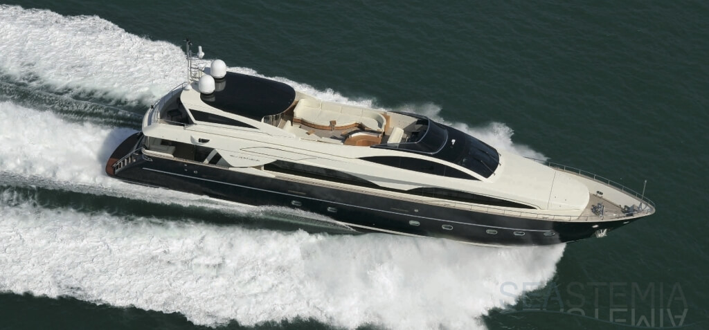 35.4meters raised pilot house, characterised by her typical semi closed open FLybridge, the Yacht is estonishing at first by her large volumes in all areas. Built in 2008 for her first owner, she is stil kept by her actual one in an excellent conditions and her interiors is a pure refined luxury elegant in the Riva spirit.